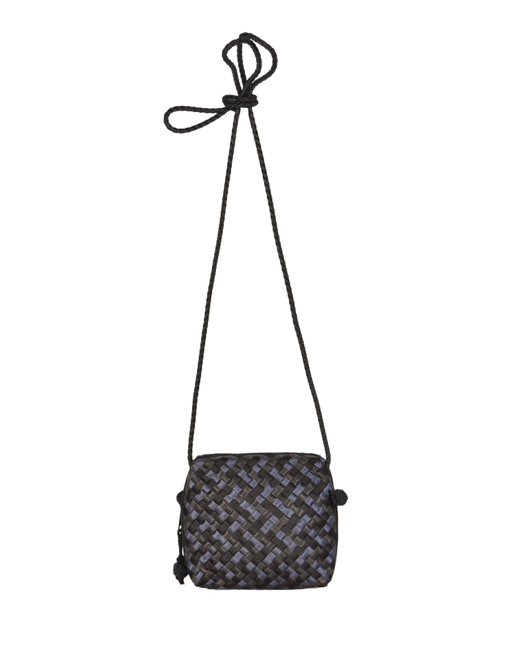 Bottega Veneta Vintage Black Blue Satin Woven Intrecciato Crossbody Mini Bag