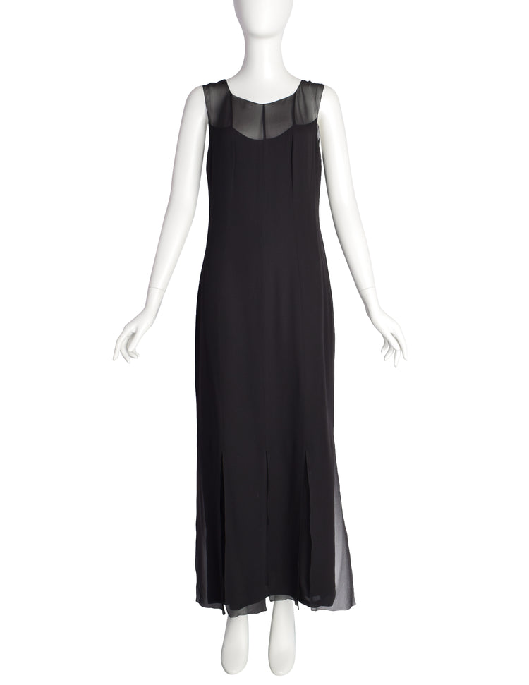 Chanel Vintage AW 1997 Sheer Black Silk Georgette Minimalist Column Dress