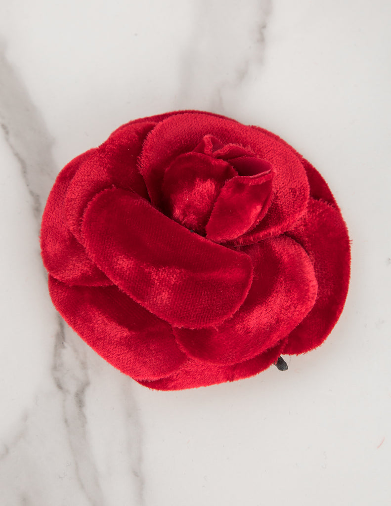 - Camellia flower brooch in a gorgeous shade of red velvet.