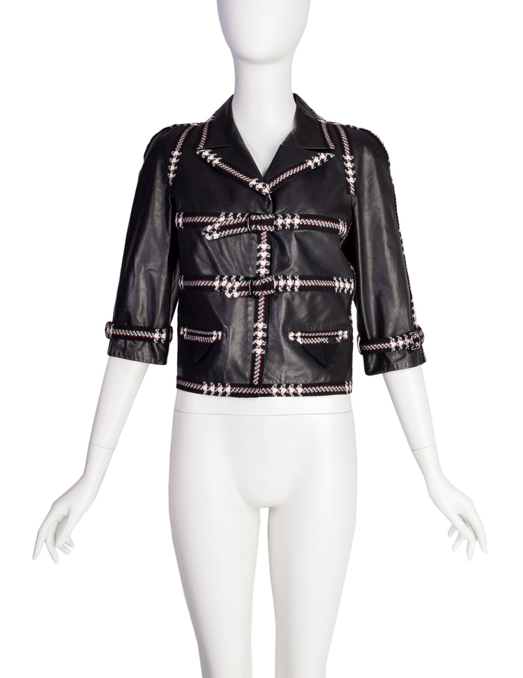 Chanel Vintage AW 2007 Tweed Detail Cropped Black Leather Jacket