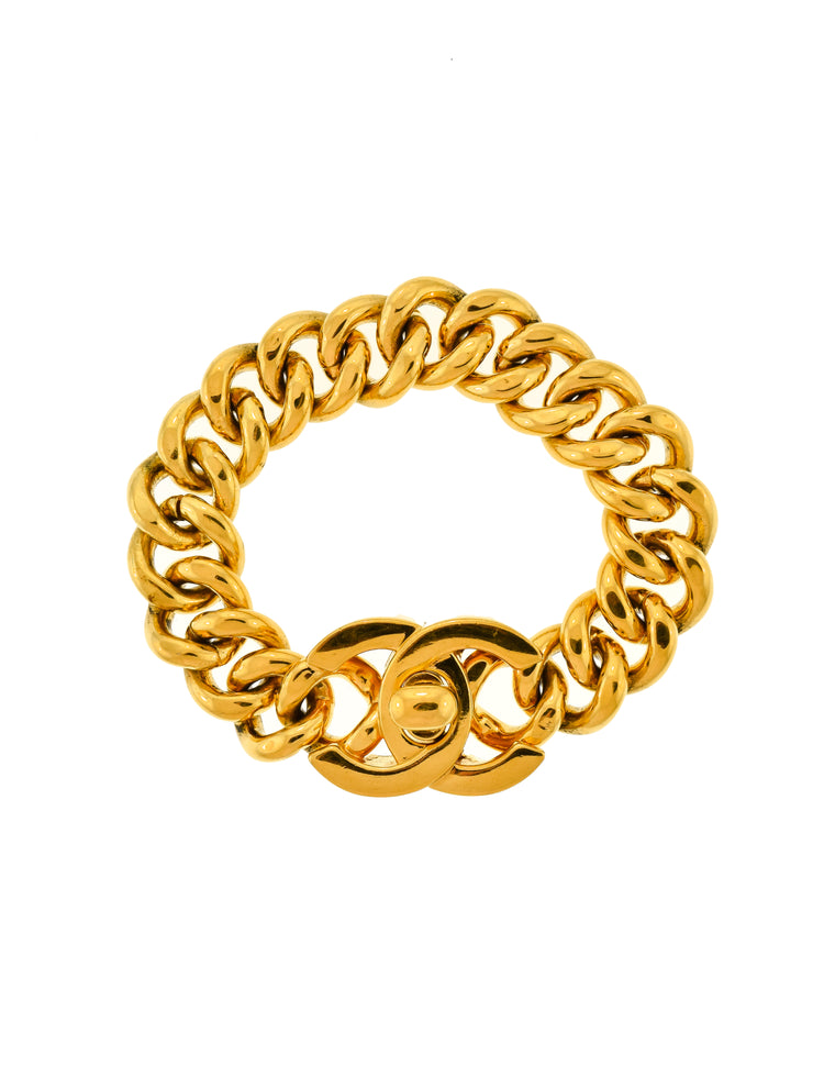 Chanel Vintage Gold CC Logo Turnlock Chain Bracelet