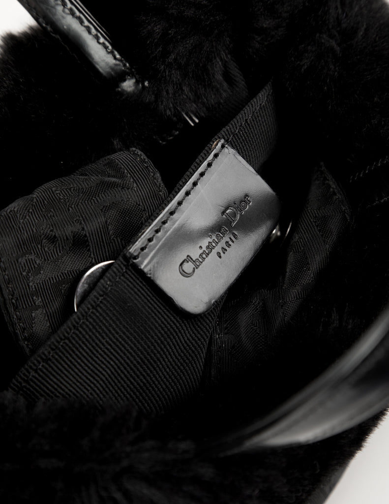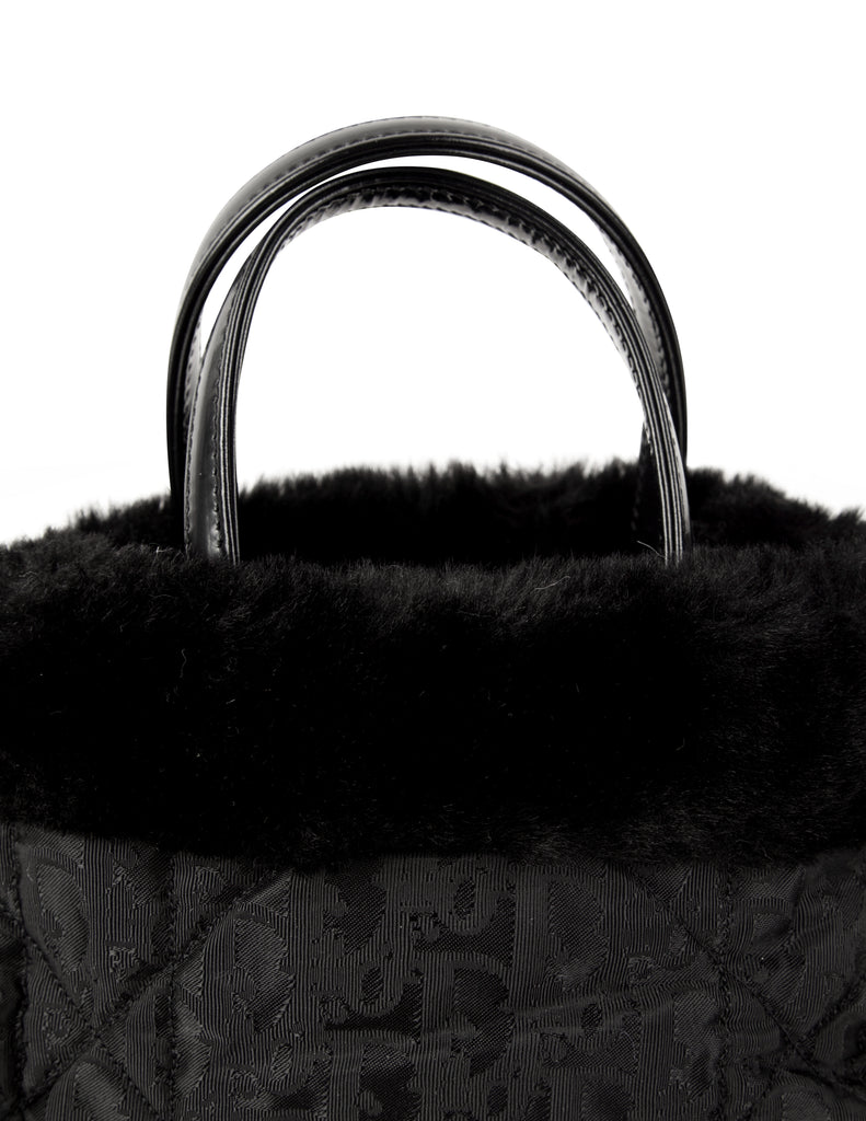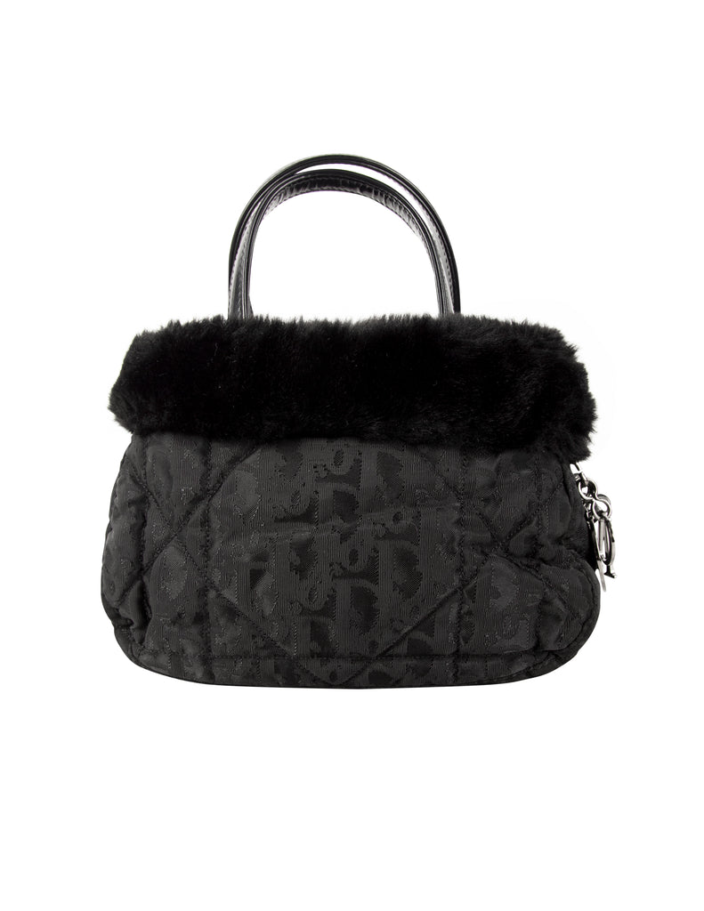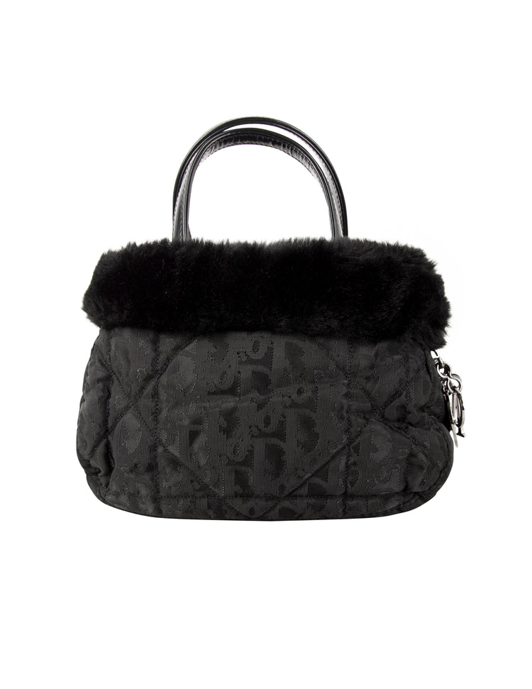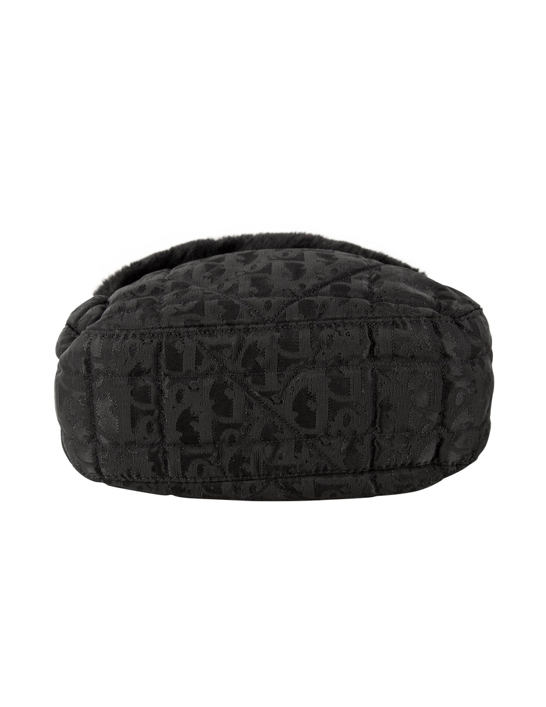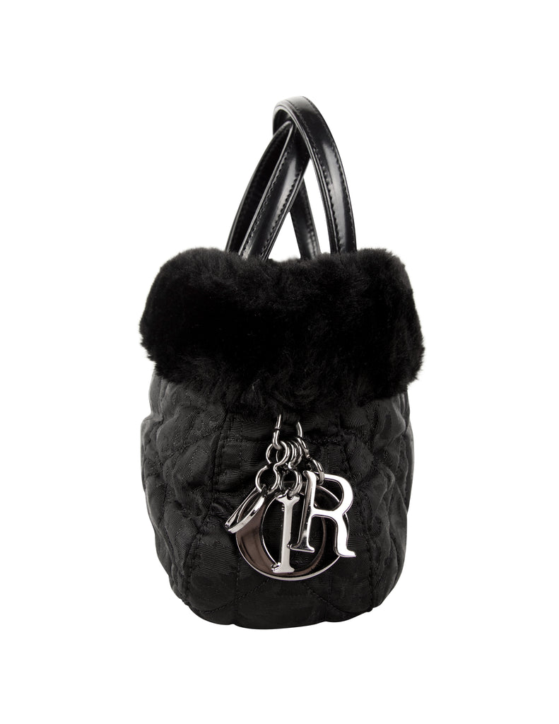 Christian Dior by John Galliano Vintage 1999 Black Nylon Cannage and Faux Fur Mini Bag