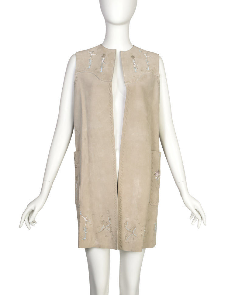 Christian Dior Pre-Fall 2017 'Le Printemps' Hand Painted Beige Suede Longline Vest