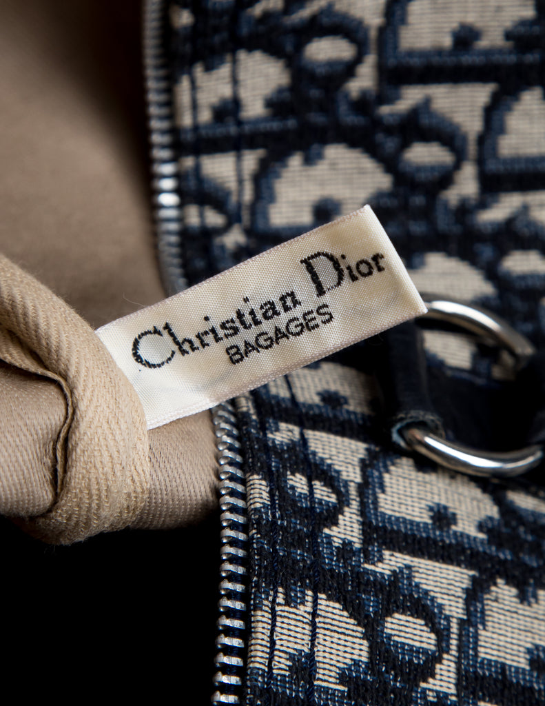 - Beige and Navy woven canvas fabric featuring the monogram Dior trotter logo all over.