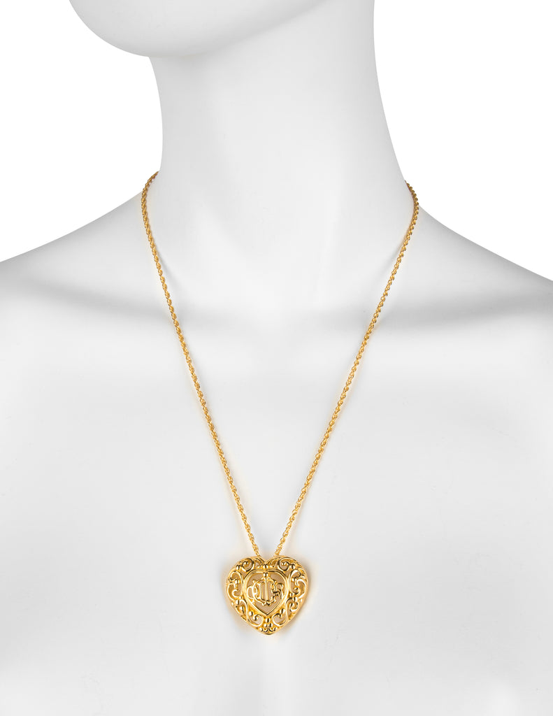 Christian Dior Vintage Golden Monogram Logo Baroque Heart Necklace