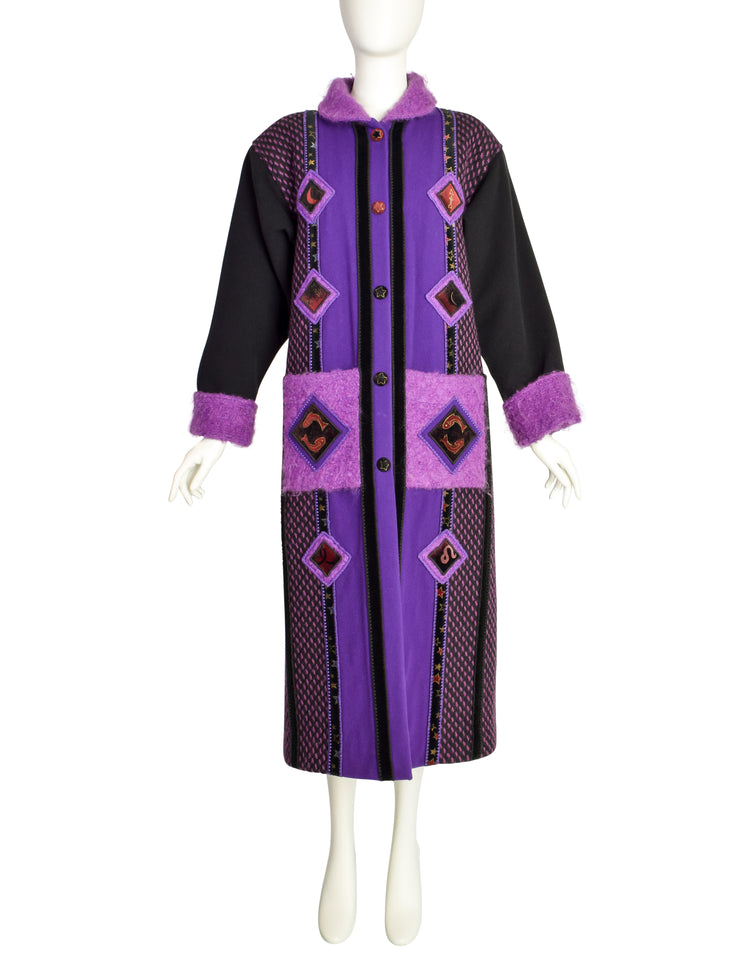 Coloratura Vintage 'Astra' Zodiac Black Purple Patchwork Wool Coat