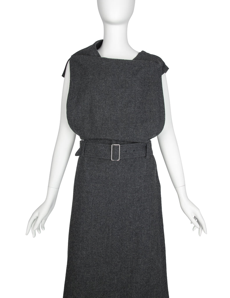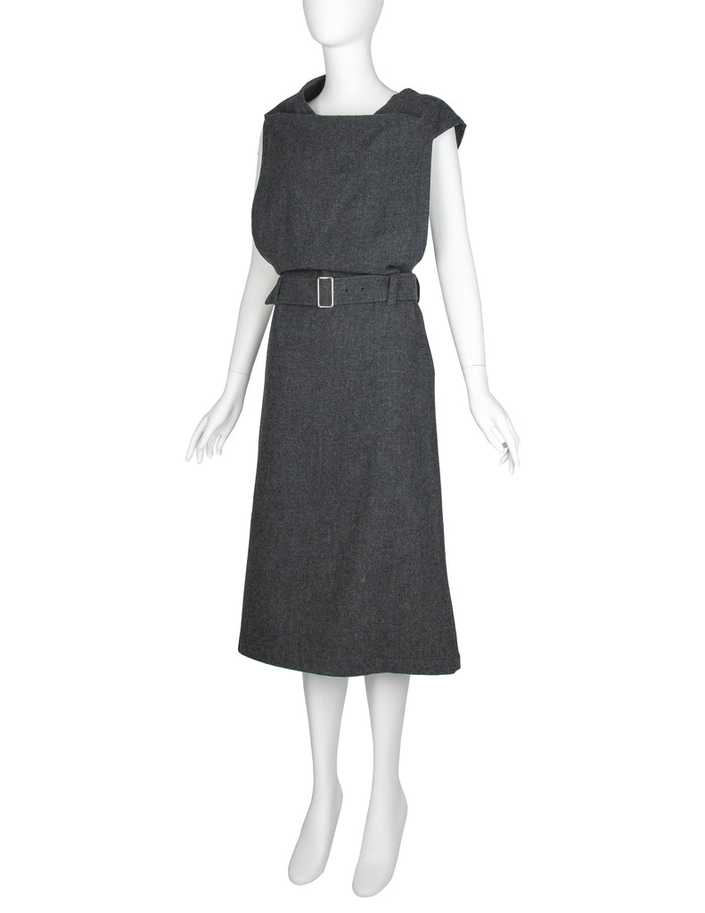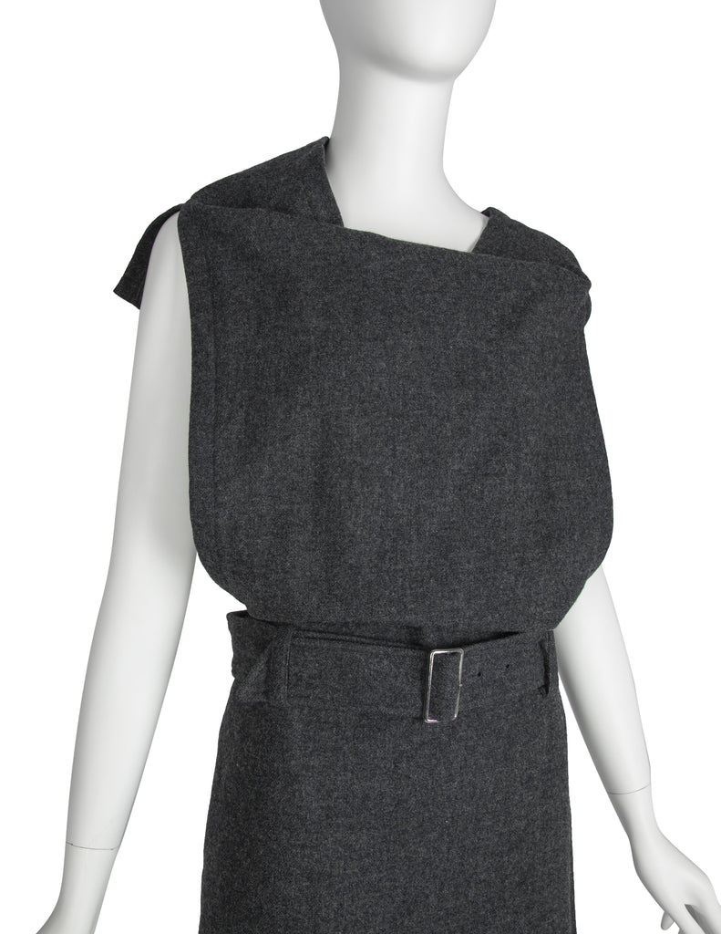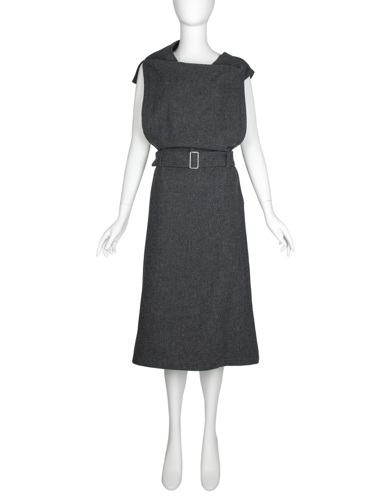Comme Des Garcons Tricot AW1989 by Junya Watanabe Charcoal Grey Wool Apron Dress