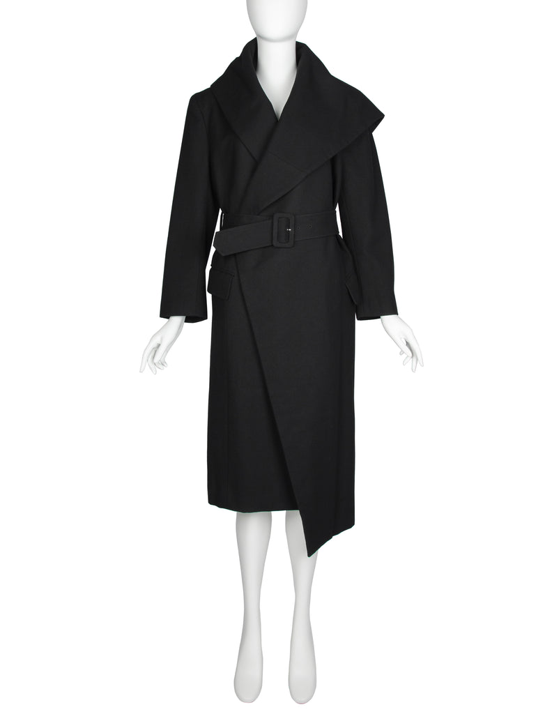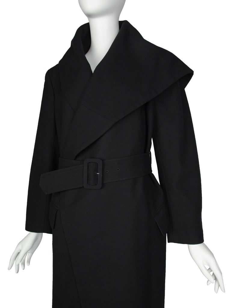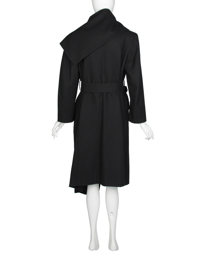 Comme des Garcons Vintage AW 1987 Black Wool Asymmetric Large Shawl Collar Coat