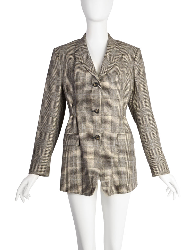 Dries Van Noten Vintage Beige Black Glen Check Brentino Blazer Jacket
