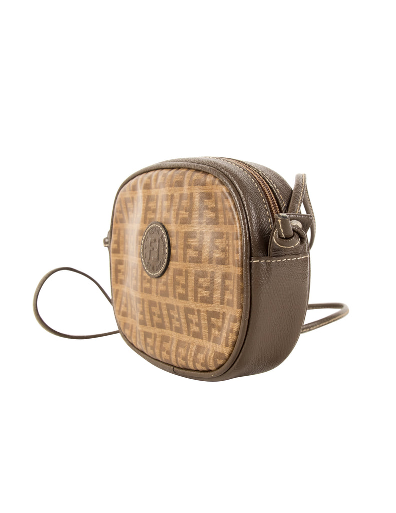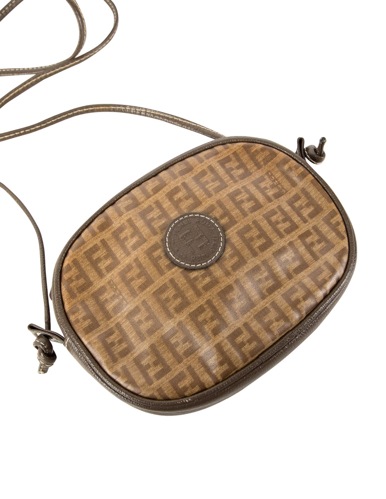 Fendi Vintage Brown and Sage Green Zucca Logo Monogram Mini Crossbody Bag