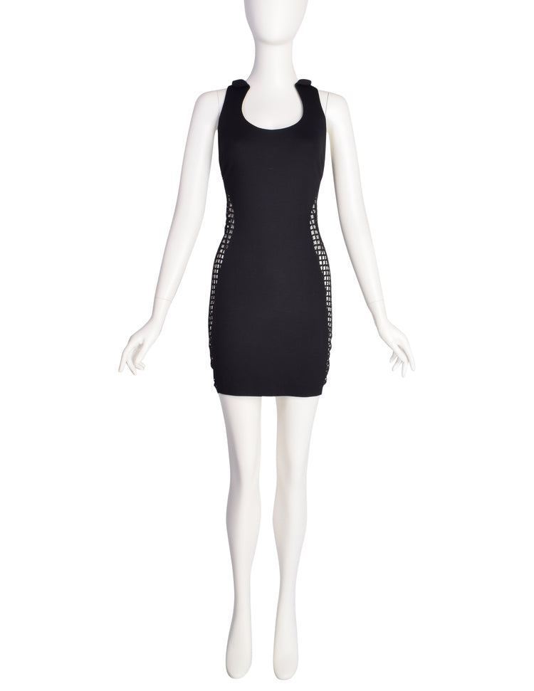 Geoffrey Beene Vintage 1990s Black Grid Cutout Side Bodycon Mini Dress