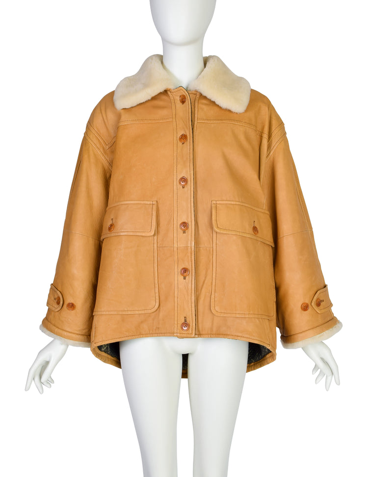 Gianfranco Ferre Vintage 1980s Oversized Butterscotch Leather Shearling Coat