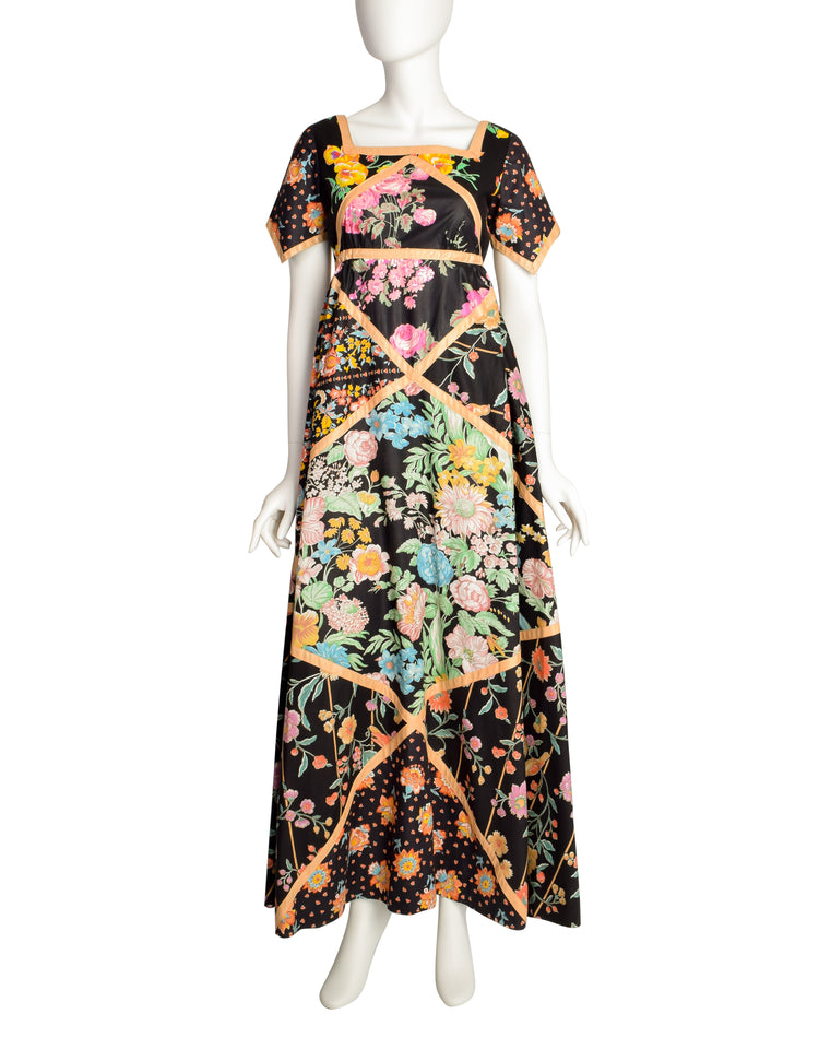 Glen of Michigan Vintage Polished Cotton Multicolor Patchwork Floral Maxi Dress