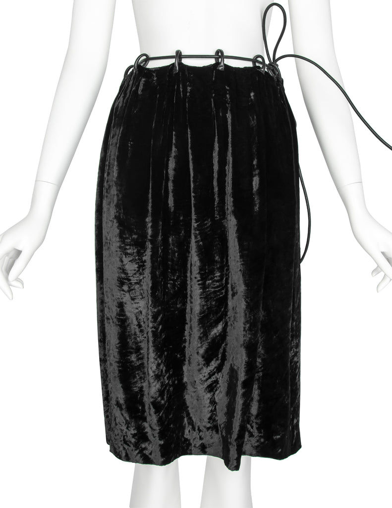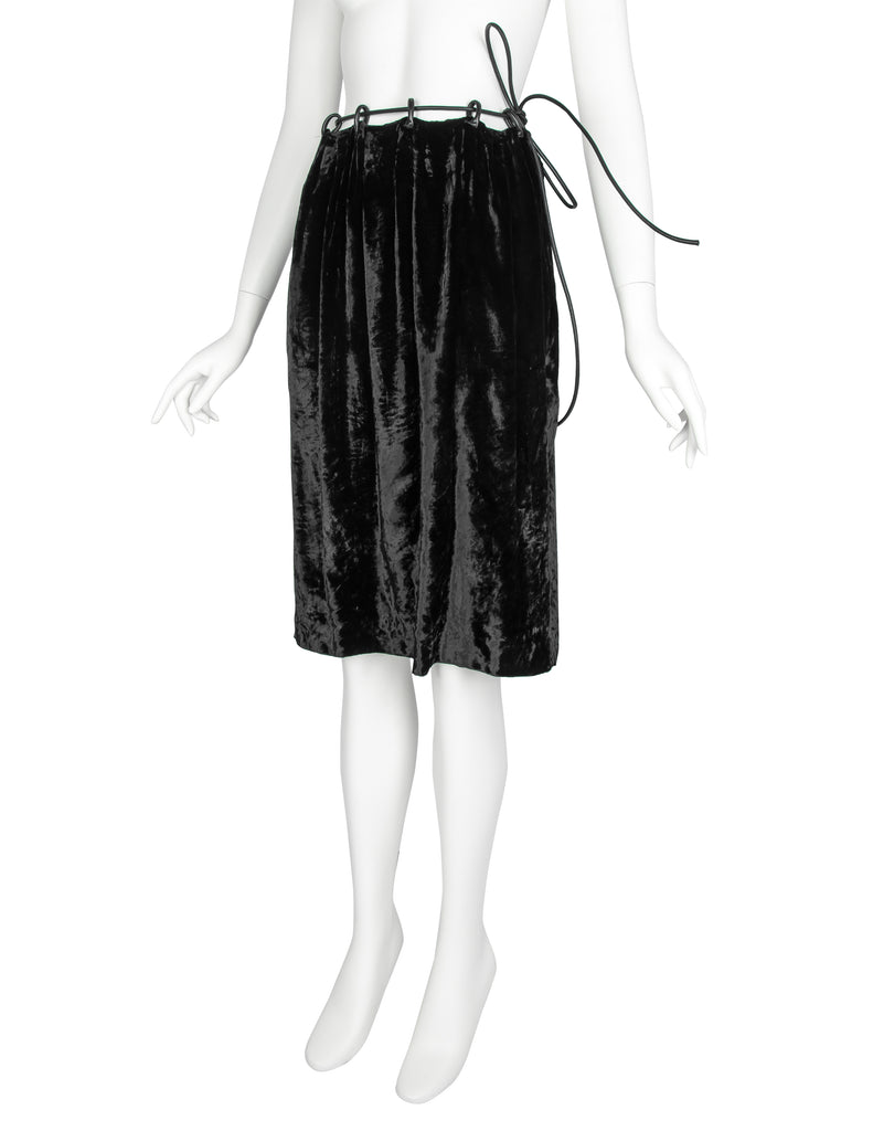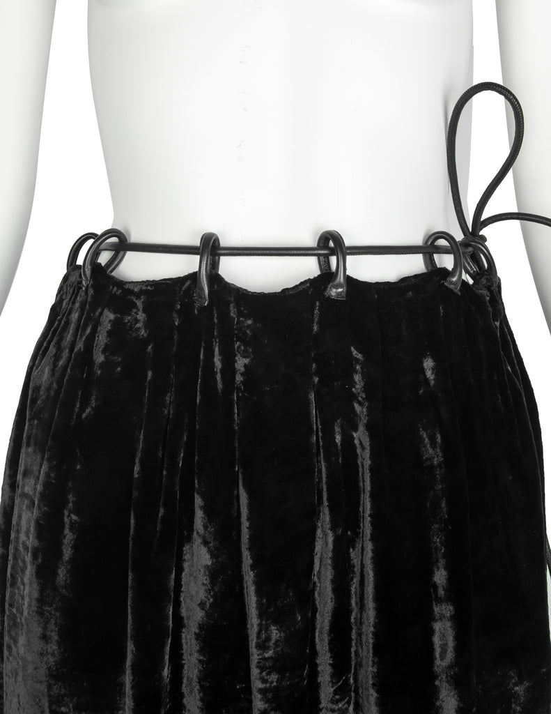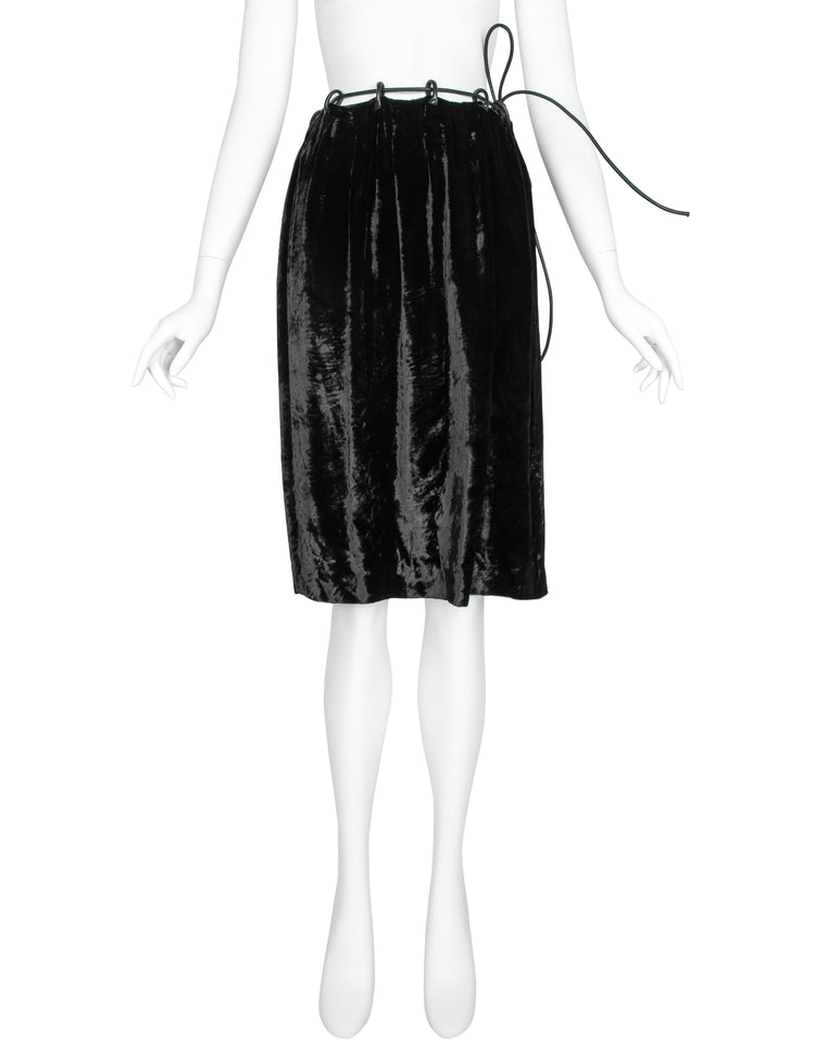 Gucci Vintage AW 1999 by Tom Ford Crushed Velvet Leather Drawstring Skirt