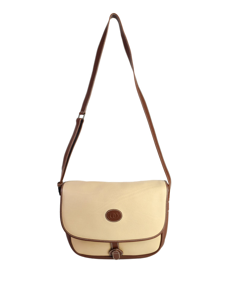 Gucci Vintage Beige and Brown Leather Logo Front Crossbody Shoulder Bag