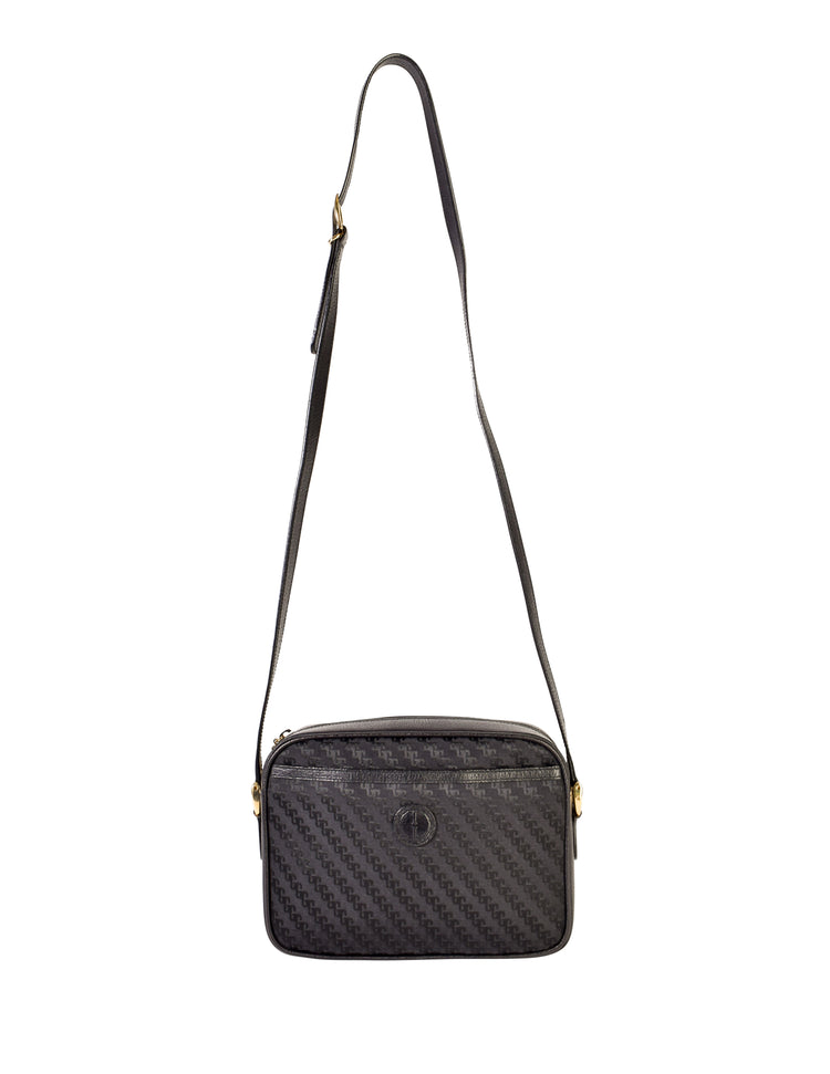 Gucci Vintage Black Monogram Fabric Leather Crossbody Shoulder Bag