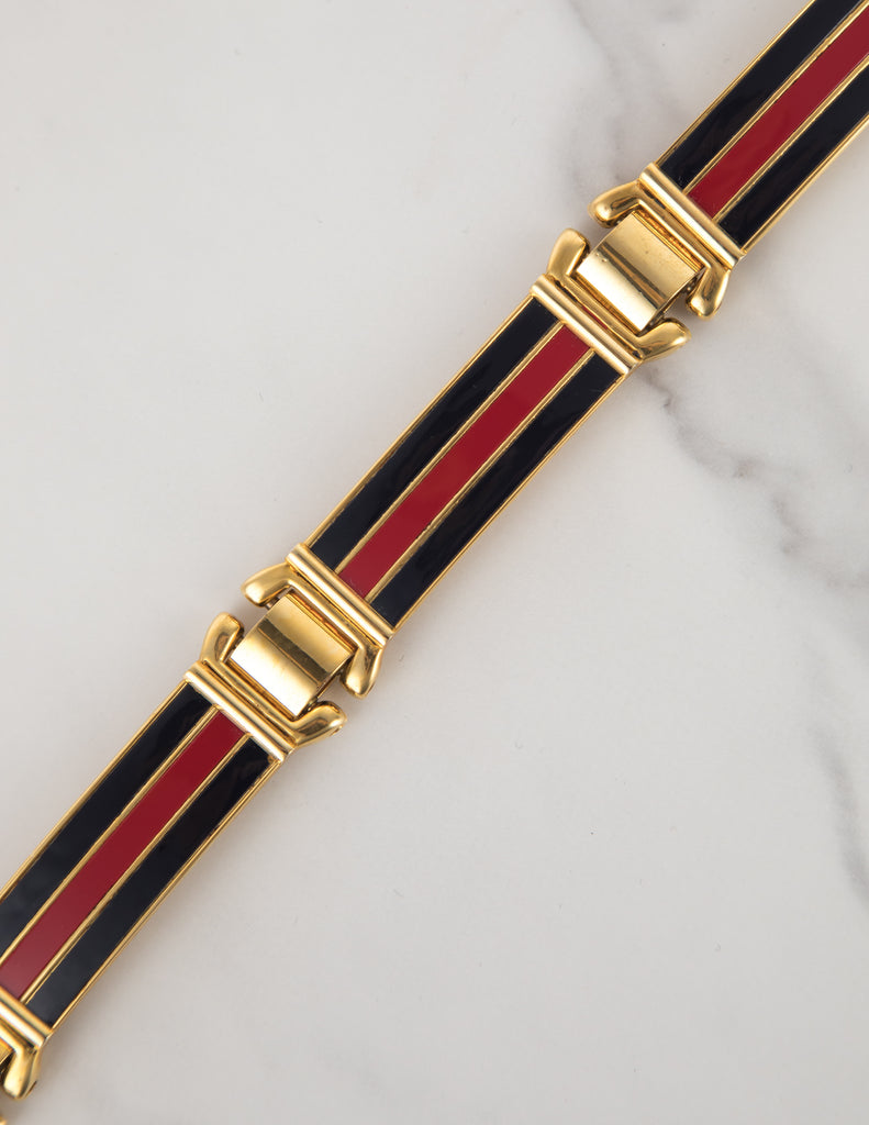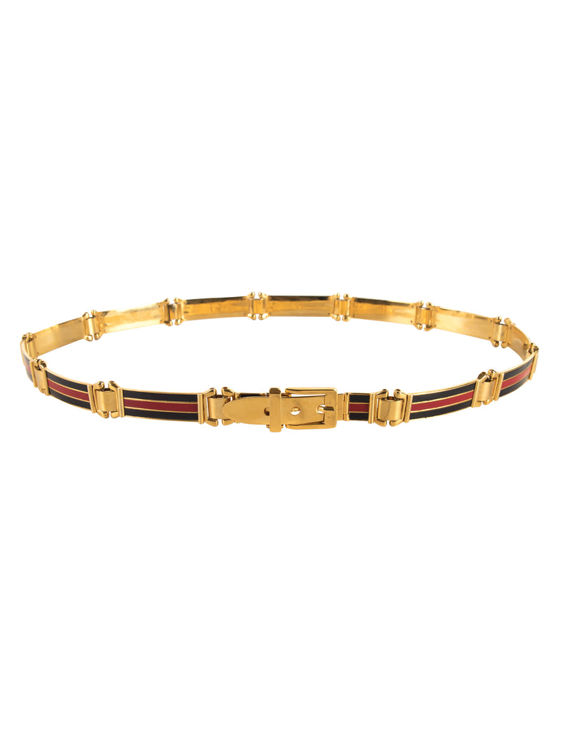 Gucci Vintage Golden Red Black Enamel Striped Belt