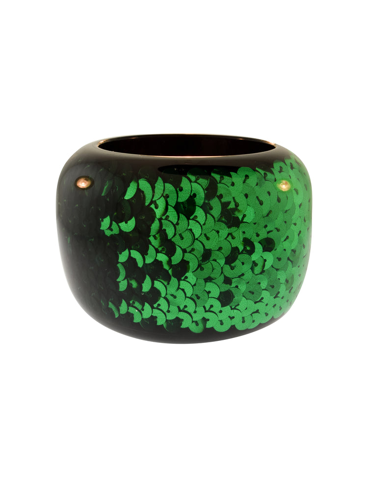 Henri Bendel New York Heavy Emerald Green Sequin Resin Chunky Wide Bracelet