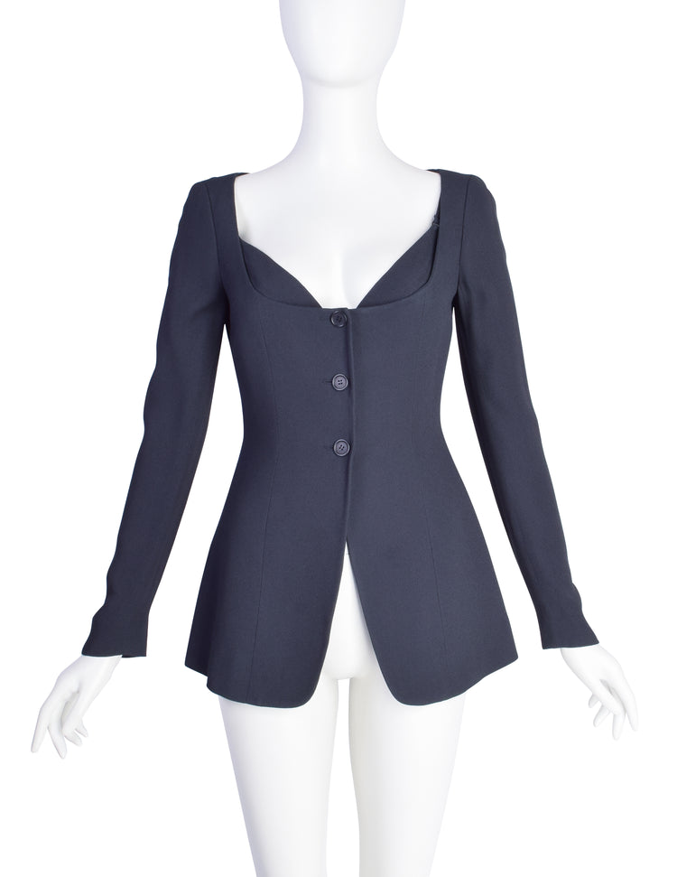 Isaac Mizrahi Vintage SS1996 Runway Deepest Blue Wool Gabardine Jacket and Bra Set