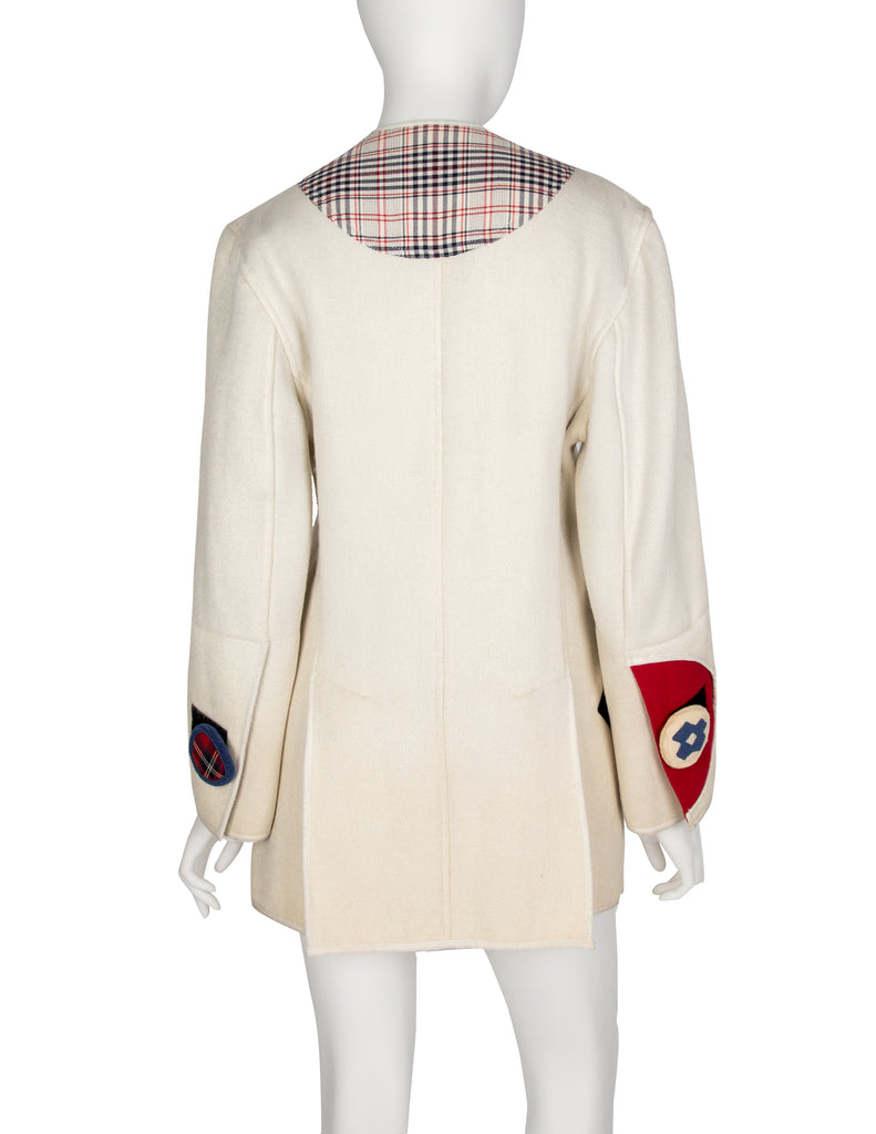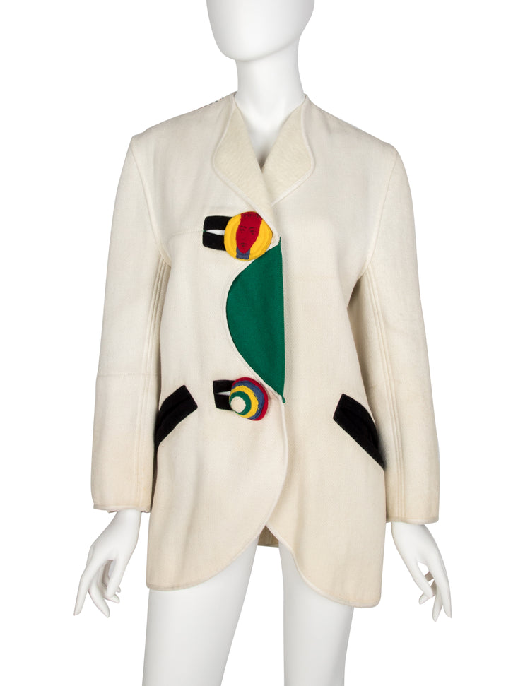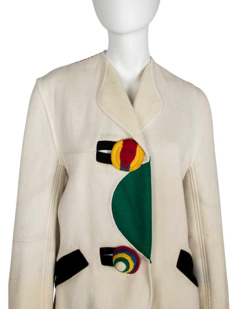Jean Charles de Castelbajac Vintage AW 1990 Off-White Wool Coat with Handmade Buttons