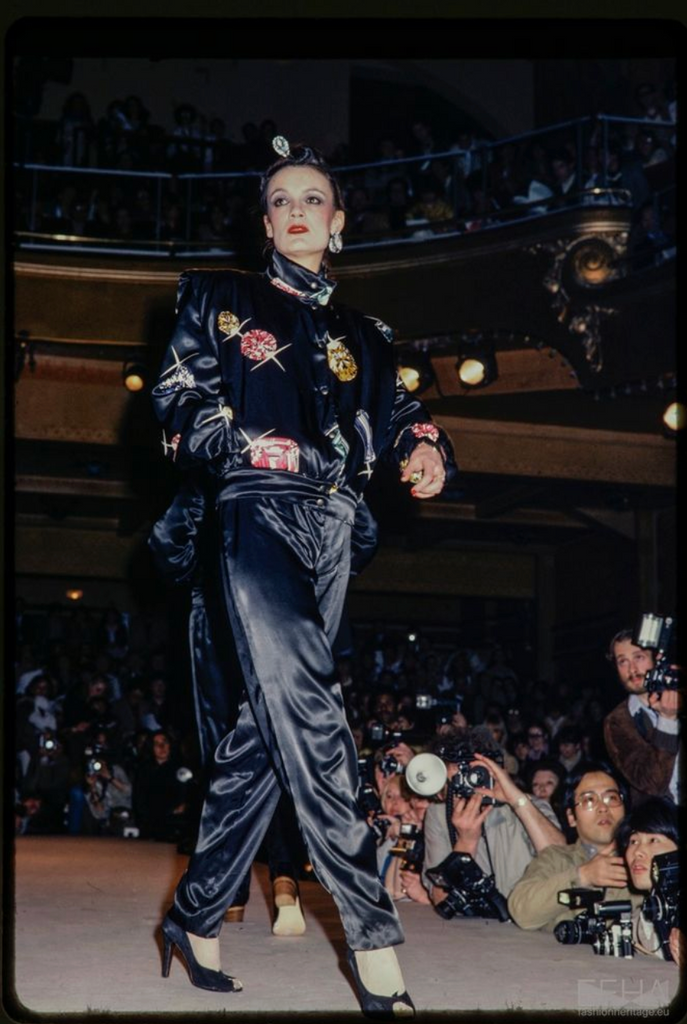 Rare, outstanding vintage skirt by Jean Claude De Luca of Paris, fromFall/Winter 1978, the fabric shown here documented on the runway and campaign.
