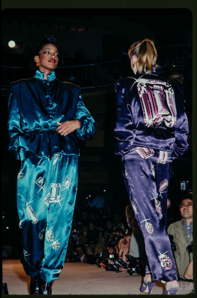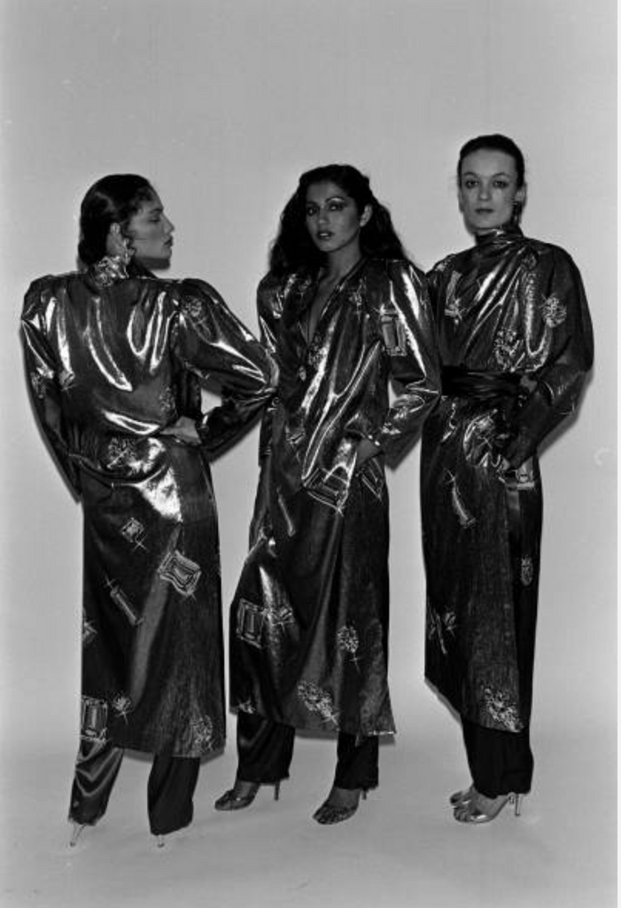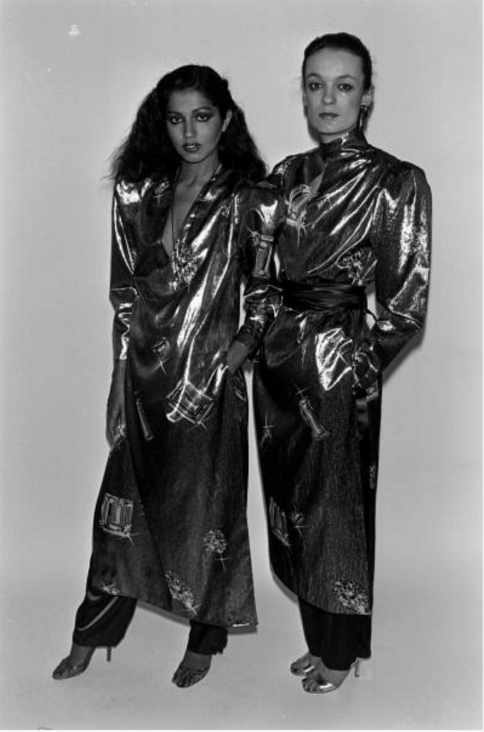 Jean Claude De Luca Vintage AW 1978 Gemstone Print Pleated Metallic Lame Wrap Skirt