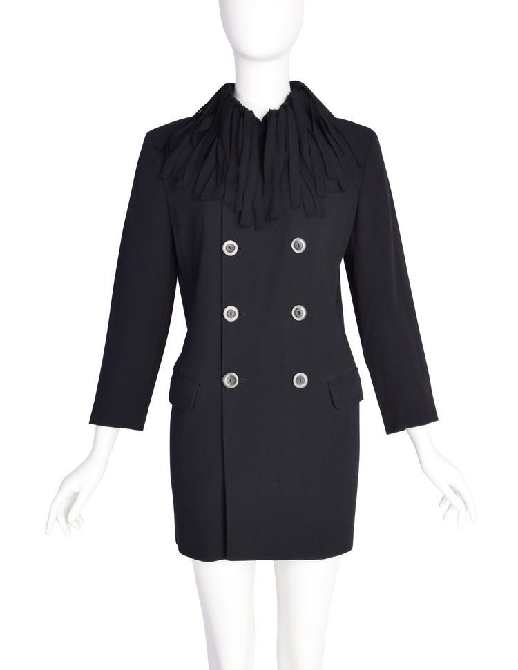 Jean Paul Gaultier Vintage Black Wool Double Breasted Fringe Collar Jacket