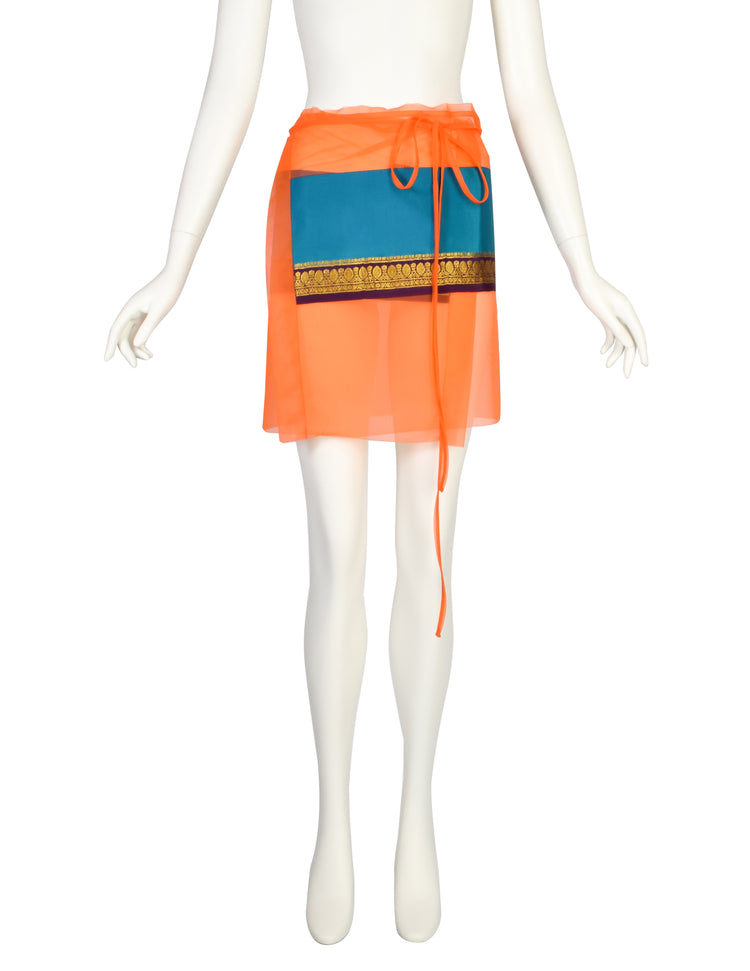 Jean Paul Gaultier Vintage SS 1997 Bright Orange Sheer Wrap Mini Skirt
