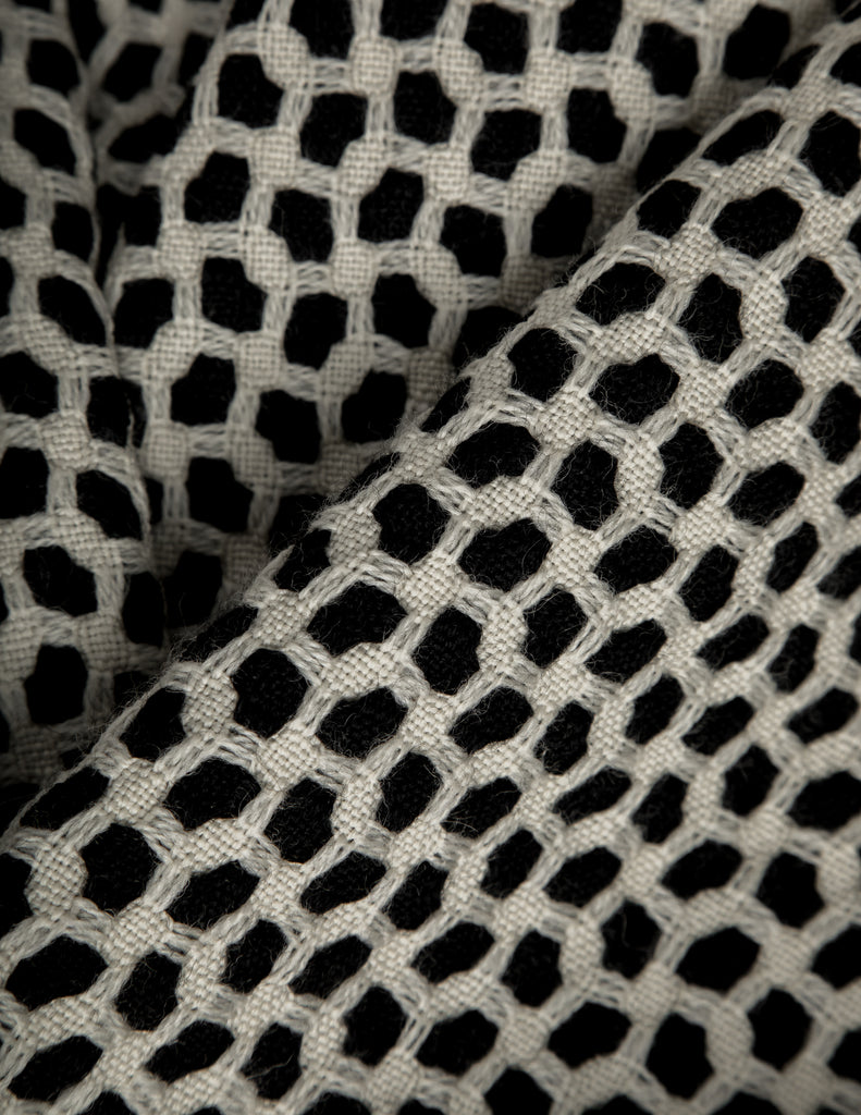- Super cool black and ivory wool tweed with a mosaic/tiled style pattern.