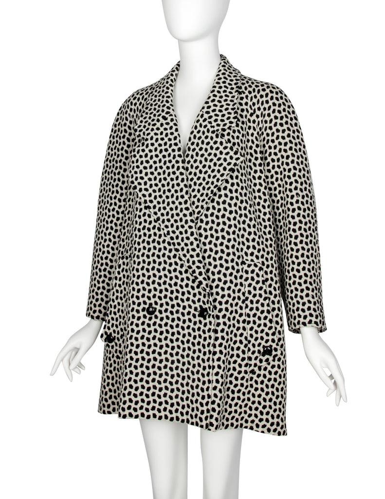 Karl Lagerfeld Vintage 1990s Black and Ivory Mosaic Tweed Coat