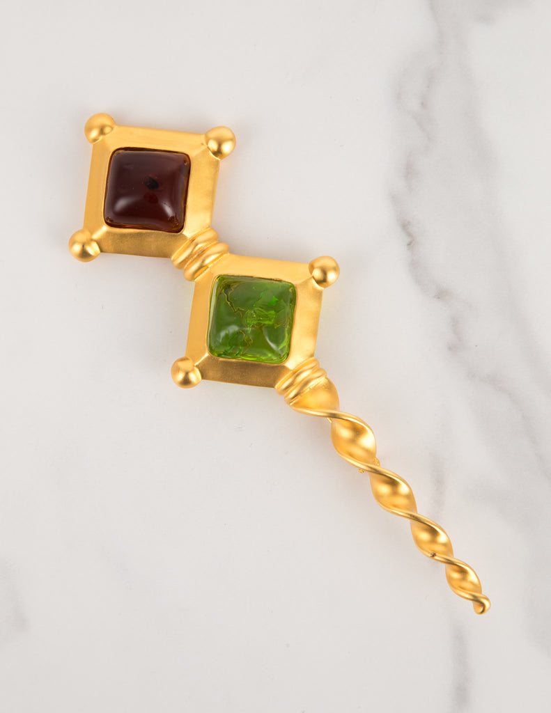 Karl Lagerfeld Vintage Amber and Green Gripoix Golden Wand Brooch