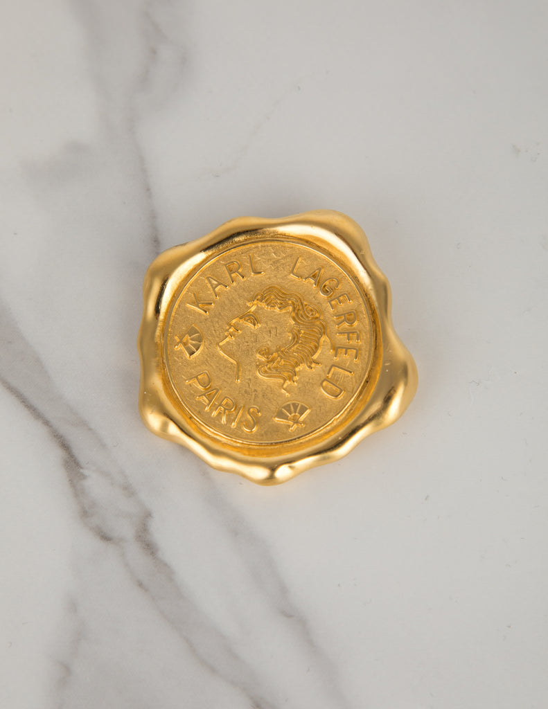 Karl Lagerfeld Vintage Golden Wax Seal Motif Brooch