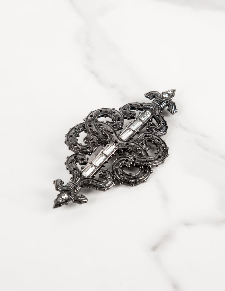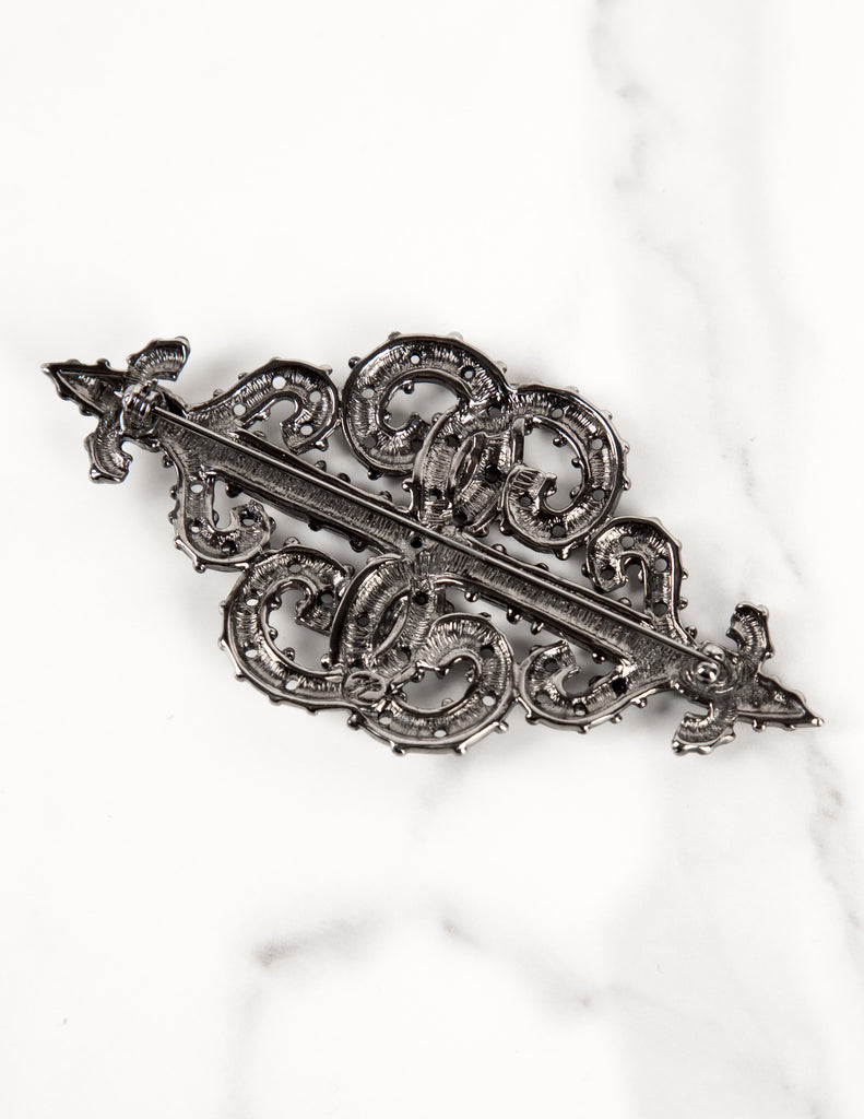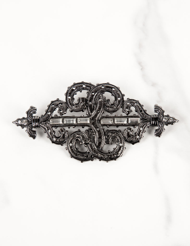 Karl Lagerfeld Vintage Large Gunmetal Baroque Fleur de Lis Brooch