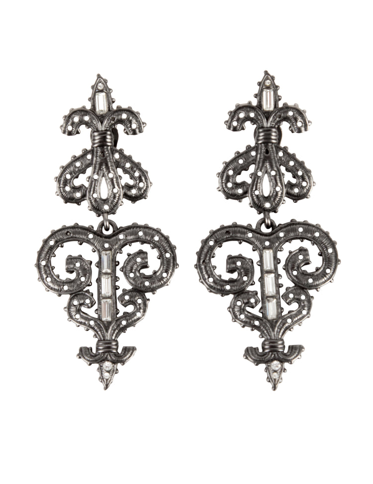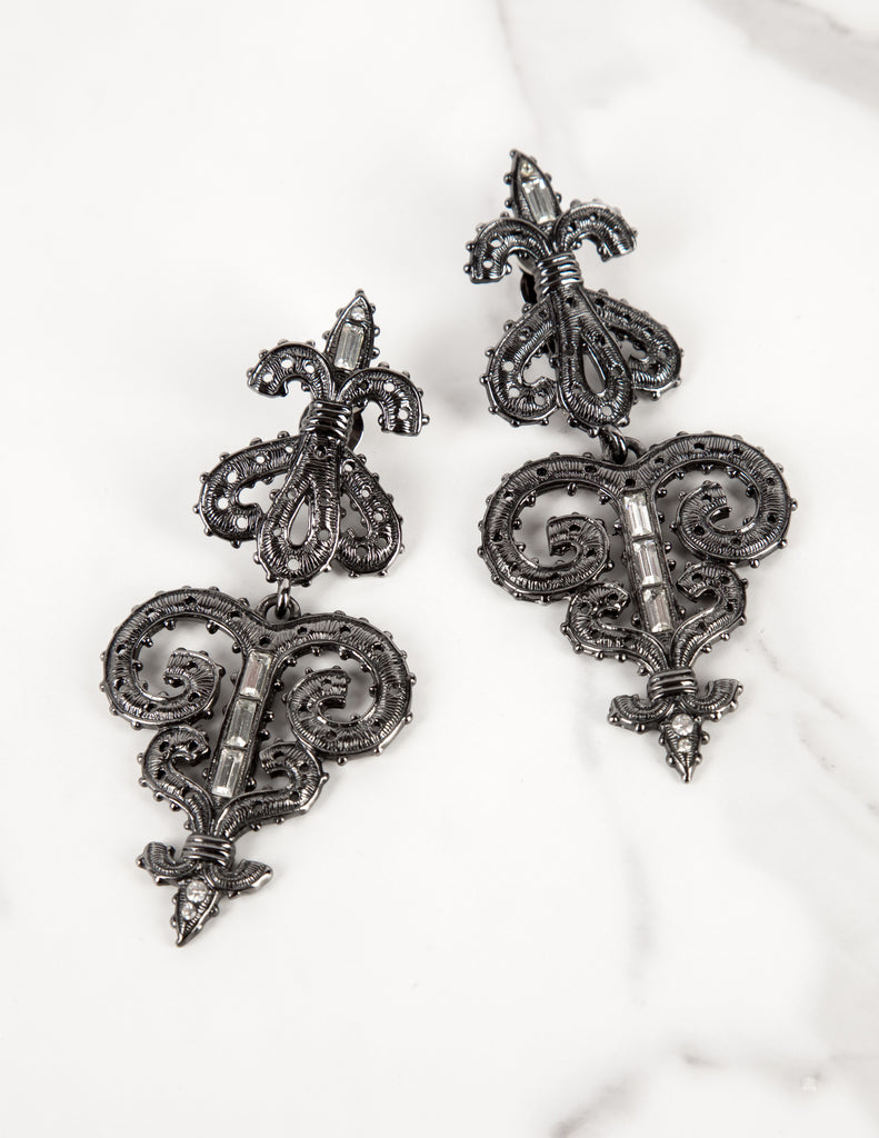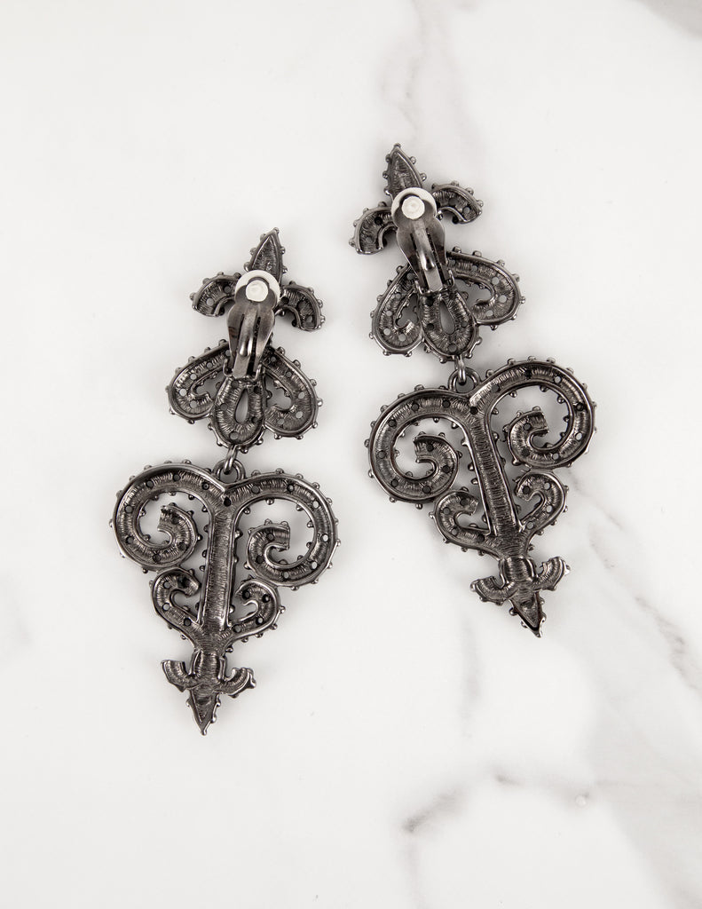 Karl Lagerfeld Vintage Massive Gunmetal Baroque Fleur de Lis Statement Earrings