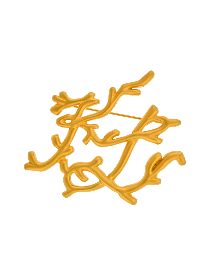 Karl Lagerfeld Vintage SS 1991 Brushed Gold Plated KL Logo Branch Brooch Pin