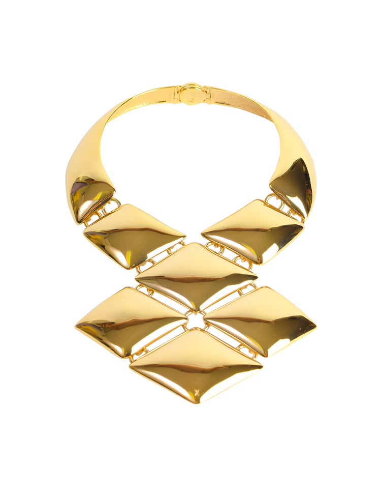 Louis Vuitton Vintage Gold Diamond Shaped Malletage Massive Statement Choker Necklace