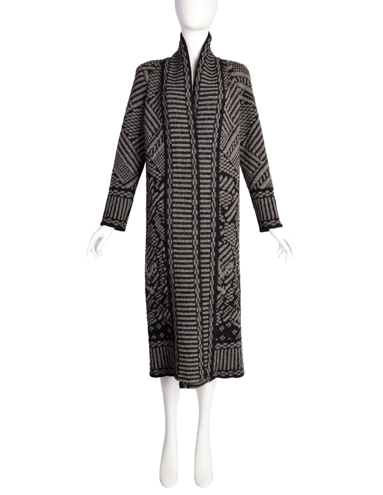 Missoni Vintage Black Brown Abstract Flower Intarsia Long Duster Cardigan Sweater