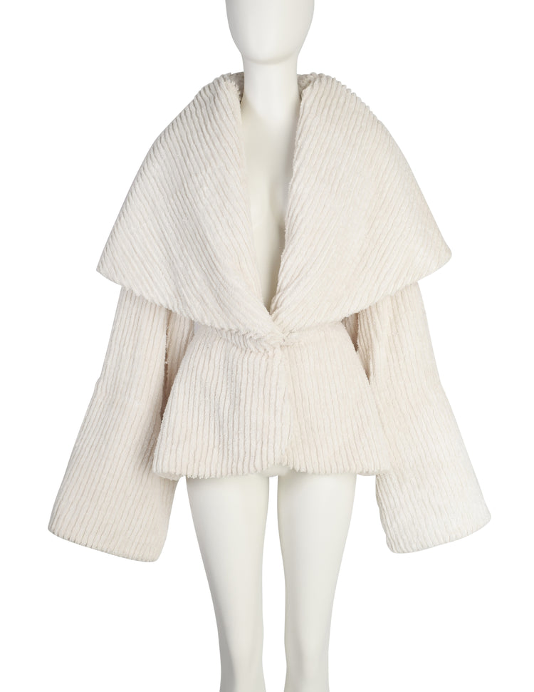 Norma Kamali Vintage 1980s Rare Off-White Chenille Huge Shawl Collar Coat