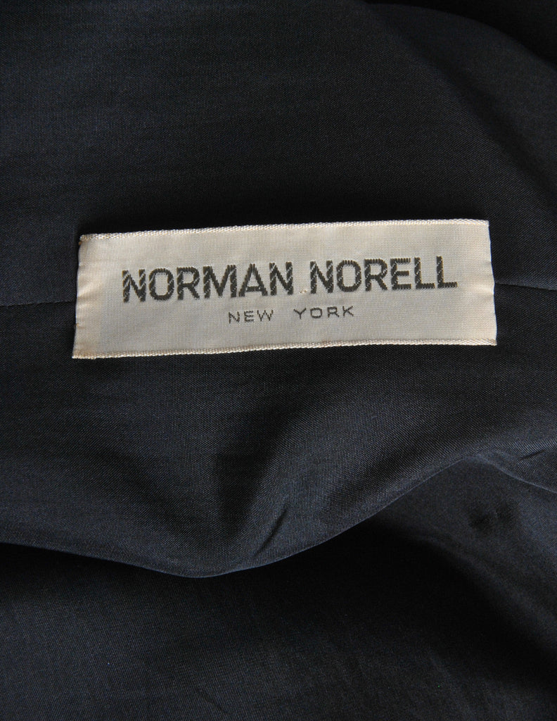 Classic vintage 1960s little black dress by Normal Norell. Scoop back. Thick crepe blend fabric, fully lined in nylon. Zip up side. Comes with original black leather waist belt. This dress is ready for a set of pearls, a coffee, and a trip down to Tiffany's.