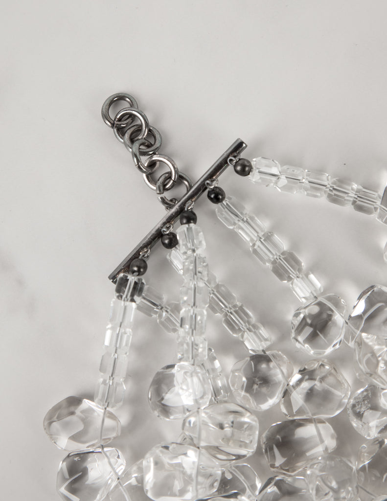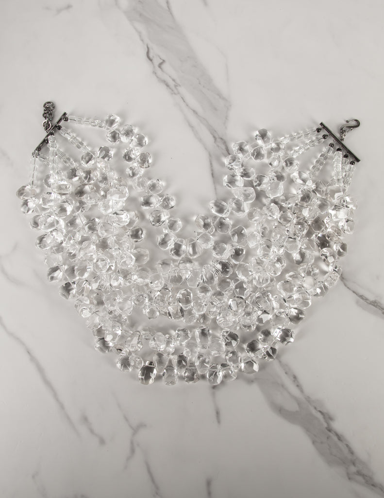 Outstanding Vintage 1990s Massive Clear Glass Teardrop Beaded Multistrand Bib Necklace