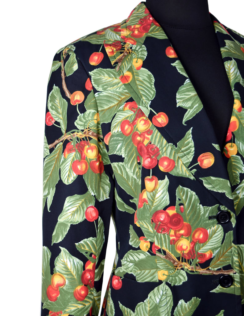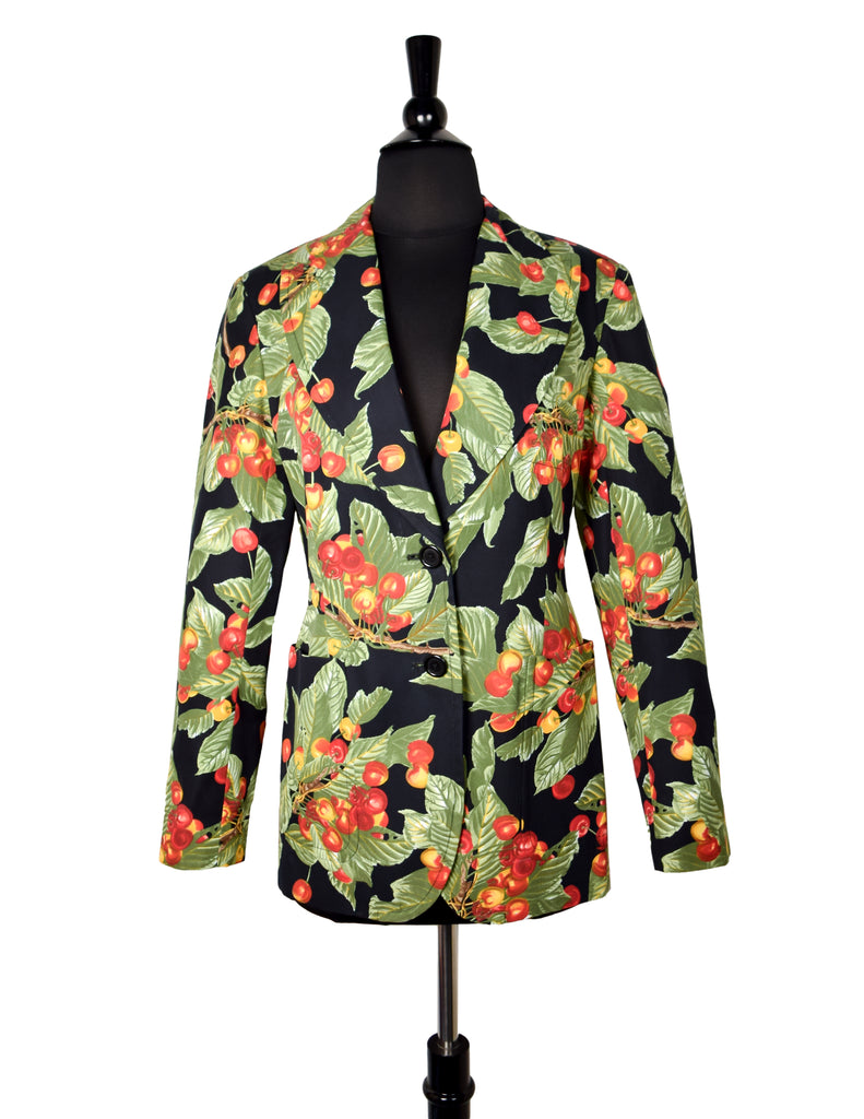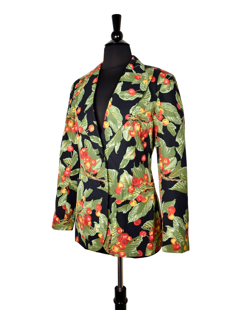 Perry Ellis by Marc Jacobs Vintage 1993 Grunge Collection Cherry Print Cotton Blazer Jacket
