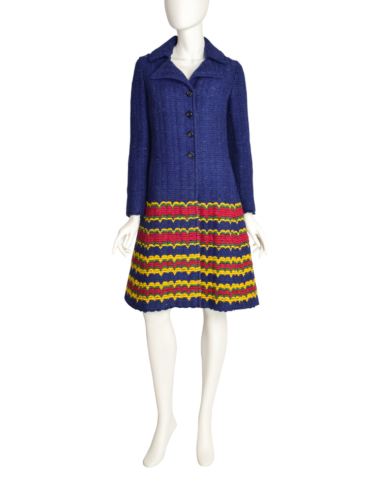 Roberta di Camerino Vintage 1970s Blue Red Yellow Green Wool Woven Yarn Coat