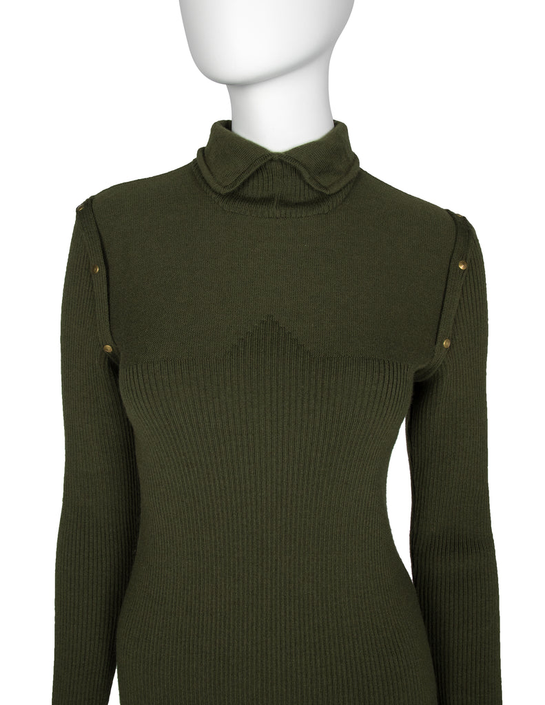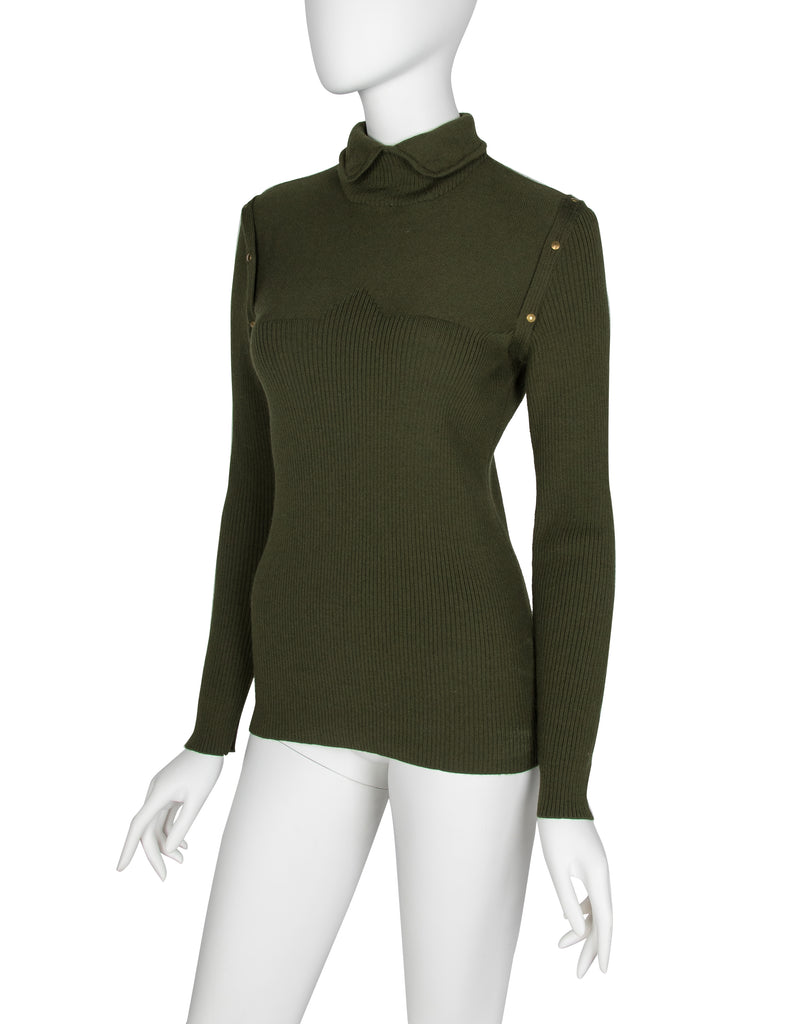 Thierry Mugler Vintage 1970s Green Ribbed Sweater