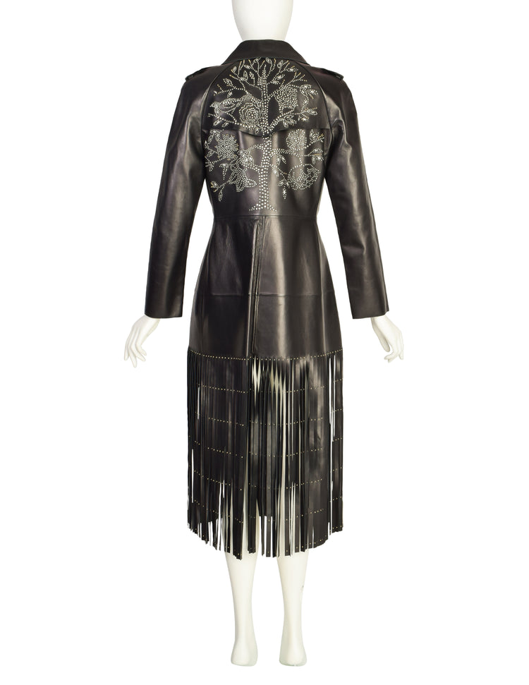 Valentino Resort 2015 REMARKABLE Black Leather Gold & Silver Studded 'Tree of Life' Fringe Trench Coat