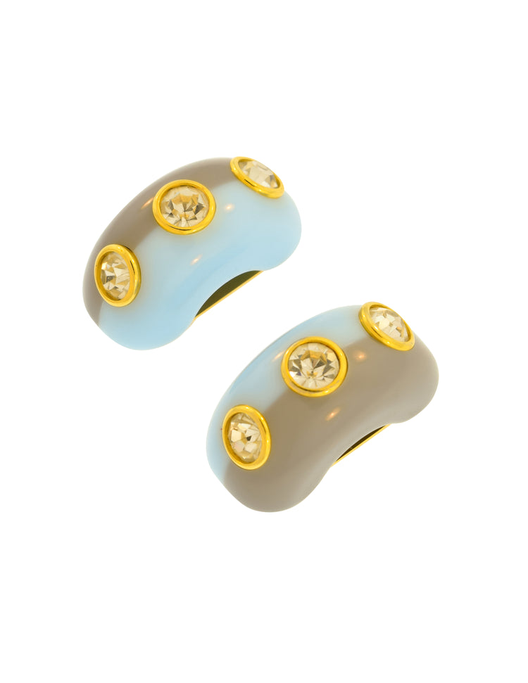 Valentino Vintage Chunky Baby Blue Grey Gold Rhinestone Half Hoop Earrings