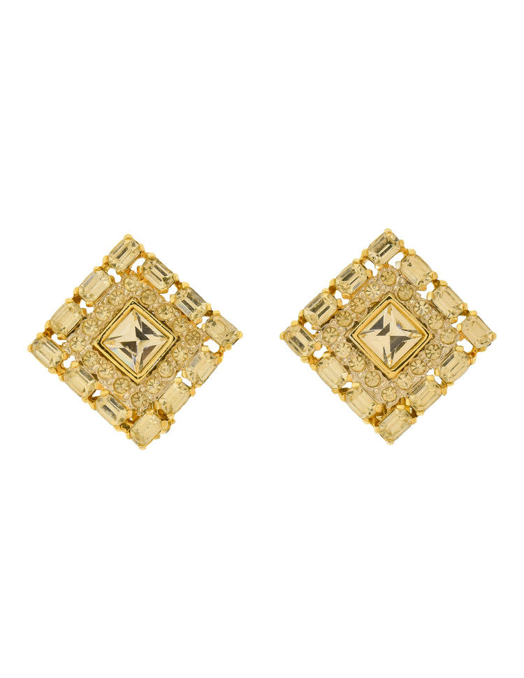 Valentino Vintage Diamond Shaped Diamante Rhinestone Gold Earrings