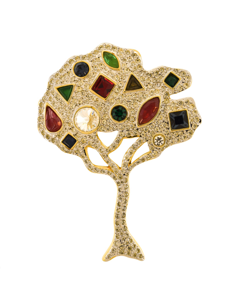 Valentino Vintage Multicolor Gem Rhinestone Encrusted Silver Gold Tree Brooch Pin
