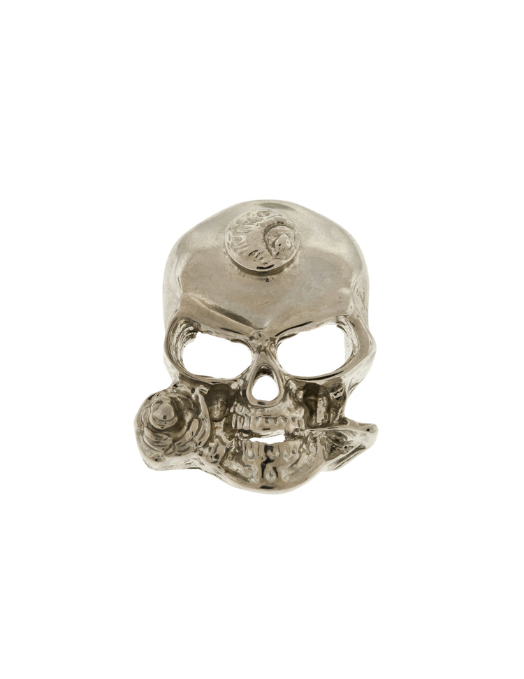 Versus Versace Vintage 1994 Silver Skull With Rose Small Tie Tack Brooch Pin