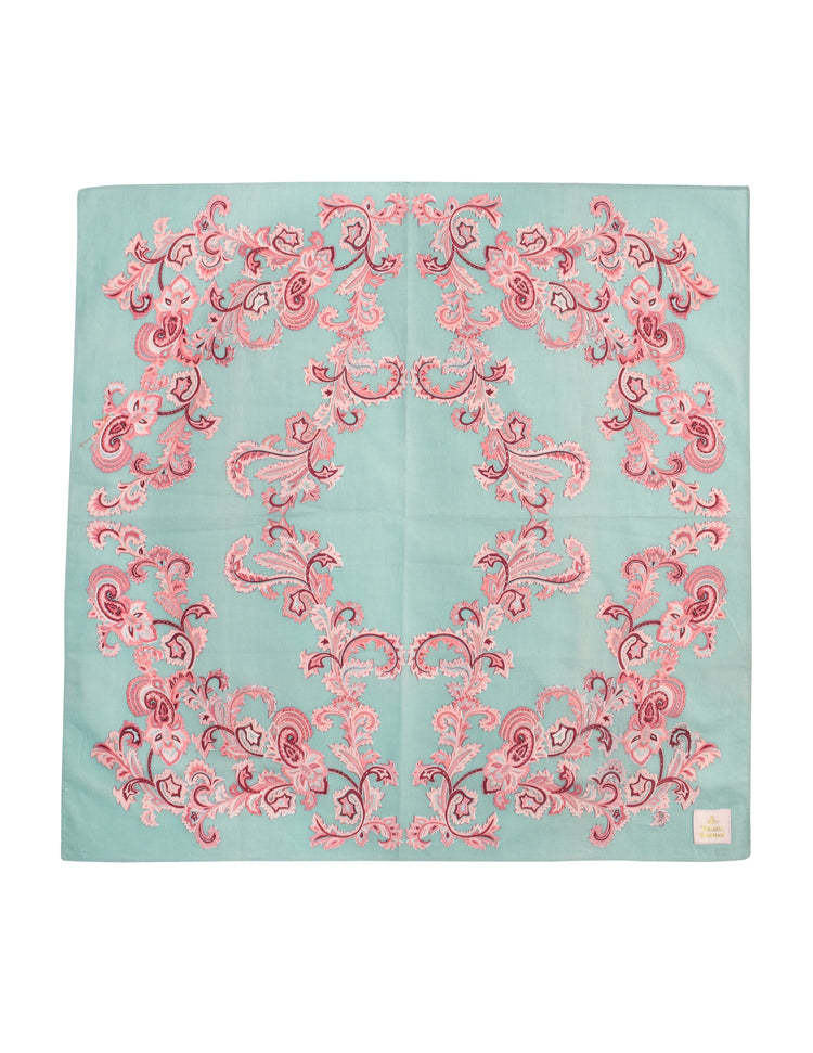 Vivienne Westwood Vintage 1990s Pink and Mint Embroidered Paisley Damask Cotton Scarf
