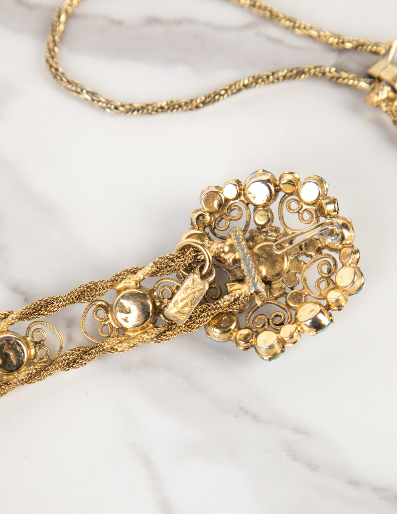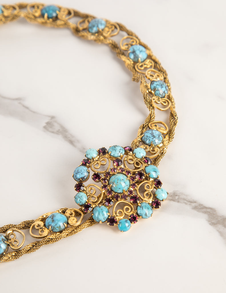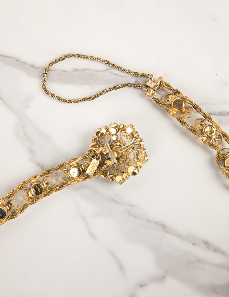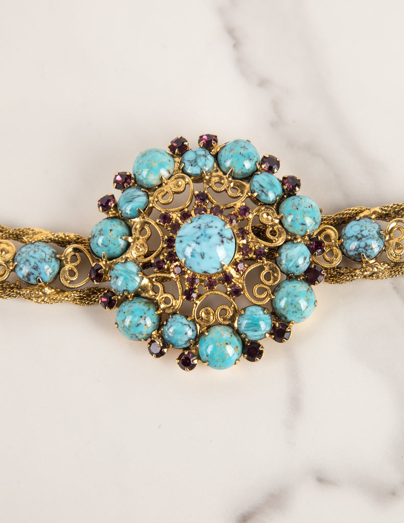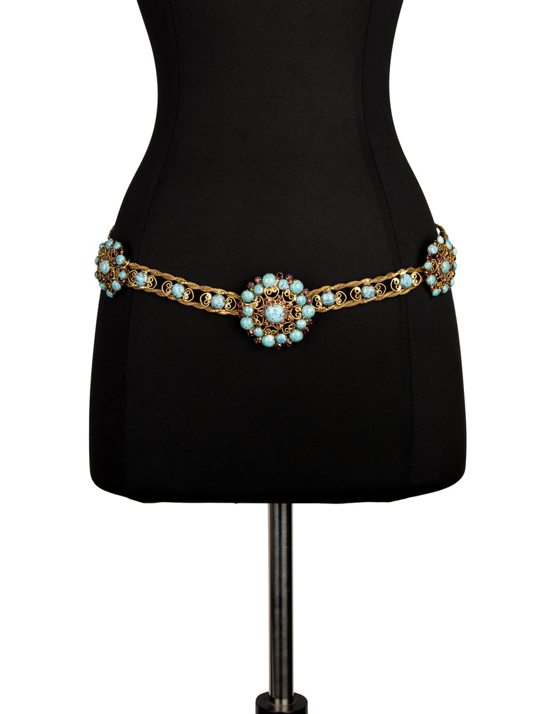 Yves Saint Laurent Haute Couture Vintage c. 1969 Turquoise and Purple Golden Filigree Belt